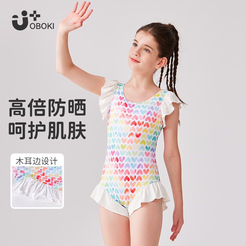 悦步儿童泳衣女孩2025新款 公主小中大童宝宝连体游泳衣泡温泉泳装