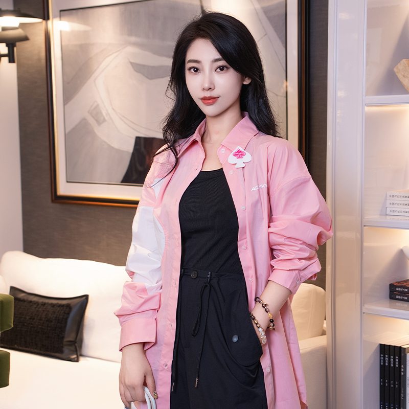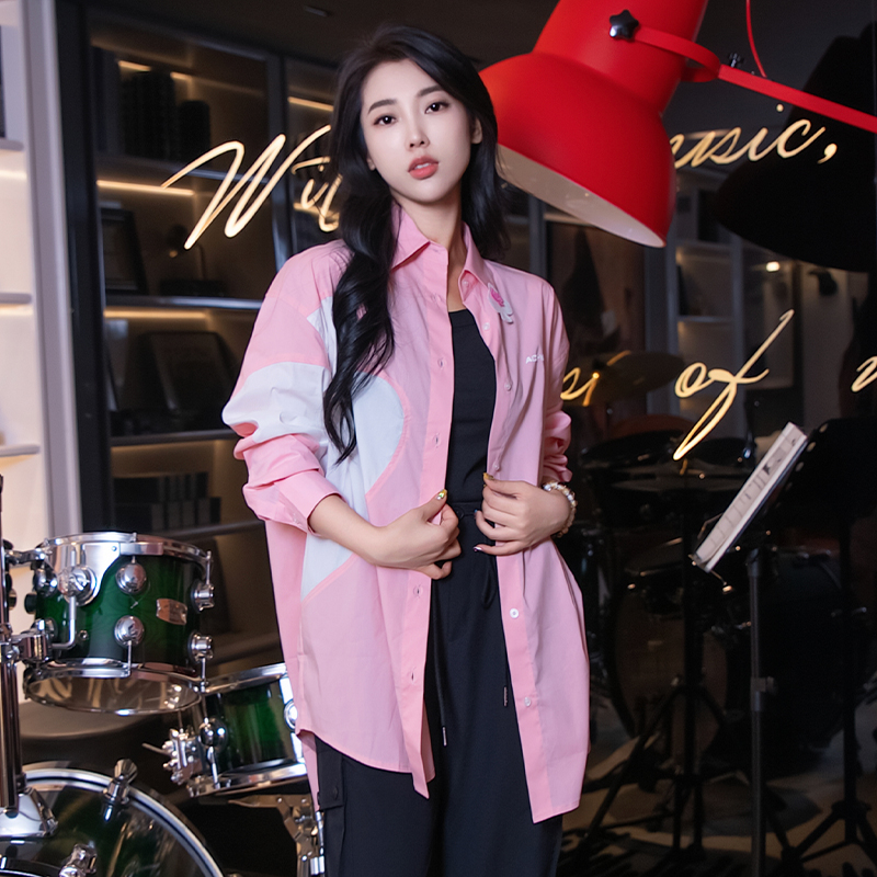 YKYB黄子韬粉白撞色衬衫 街头运动衬衣设计感小众外穿上衣情侣男女
