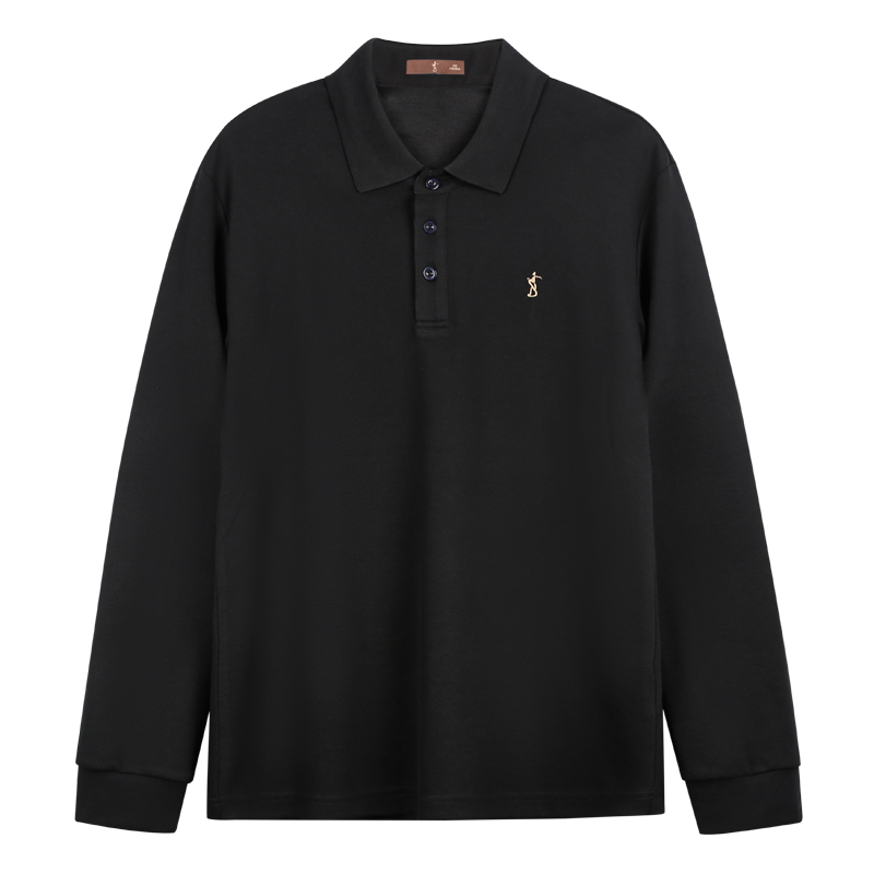新款 体恤胖子宽松免烫抗皱POLO衫 大码 无感空气格翻领长袖 男士 秋季