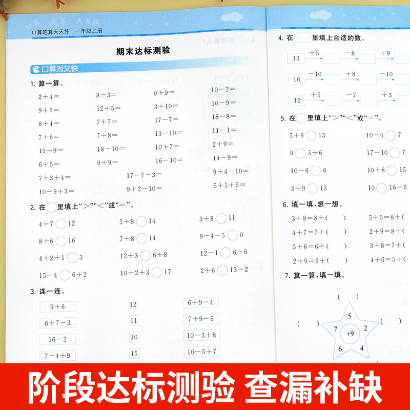一年级上册口算笔算天天练 学霸提优专项训练实验班数学一上口算题卡暑假每天100题刷题本打通关 小学1年级上学期口算题人教版
