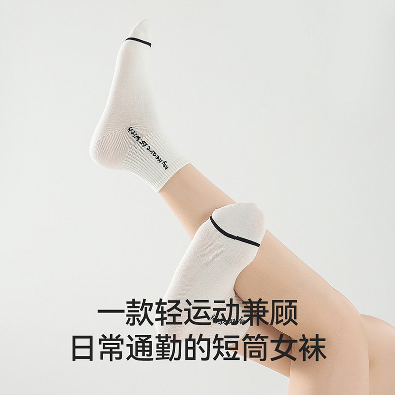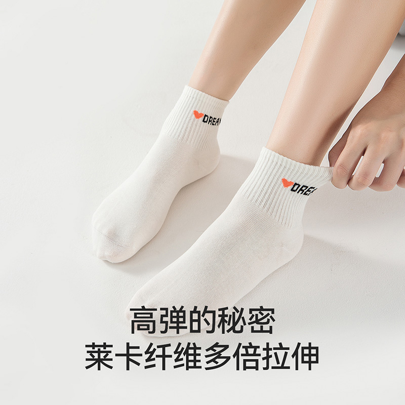 耐尔袜子女士短筒字母舒适袜夏季 袜 ins中筒透气无骨黑白色四季
