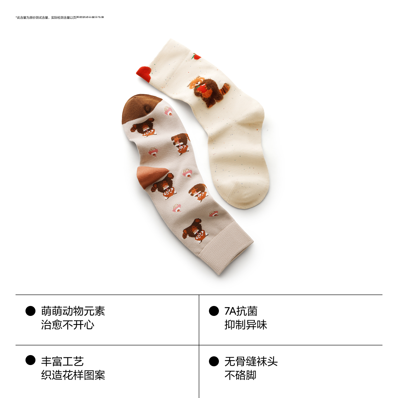有棵树袜子纯棉女士秋冬7A抗菌透气中筒袜白色长筒袜 复古花纱