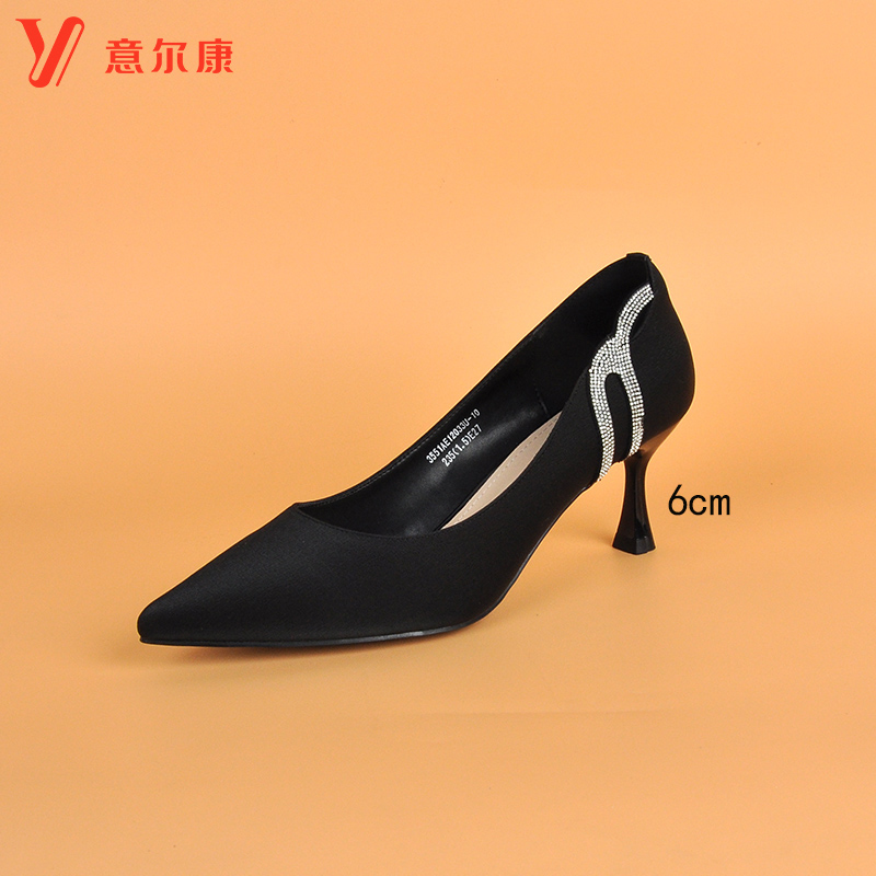 宽楦羊皮尖头细跟通勤浅口单鞋 大码 黑松露 秋冬女鞋 7or9黑色高跟鞋