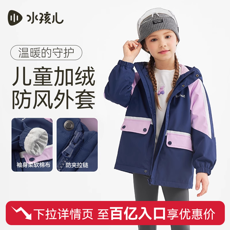 水孩儿童装 防风上衣 儿童外套加绒春秋大童男童宝宝女童工装