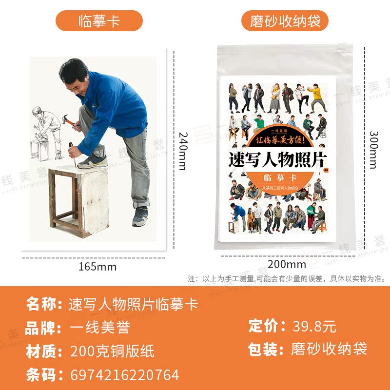 速写人物照片临摹卡16开对画全集人体动态场景线性临摹书美术联考素描线描生活站坐蹲单人组合写生素材课件考题训练五官基础速写卡