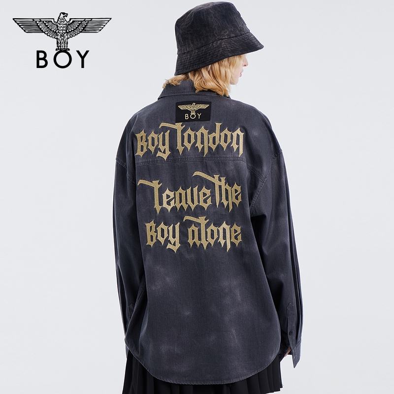 衬衫 BOYLONDON情侣金色字母满底印花长袖 外套N21004 朋克少年