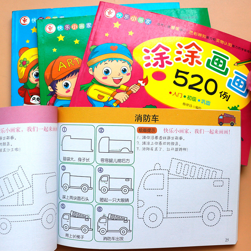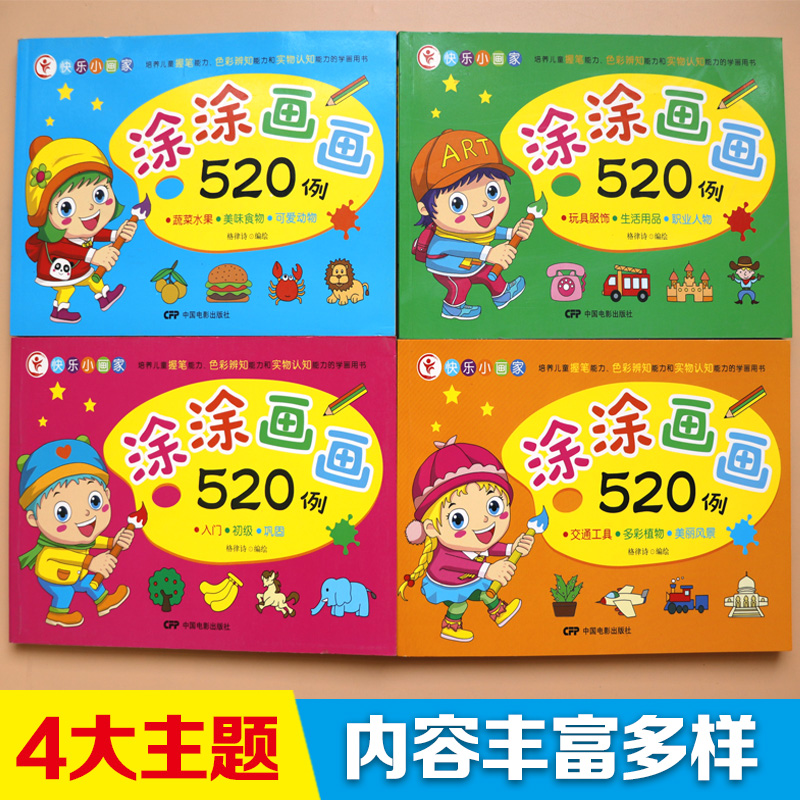 6岁幼儿童学画画涂鸦启蒙绘画本水果蔬菜动物植物交通工具连线画填色练习幼儿园大班入门临摹涂色书 涂涂画画520例快乐小画家0