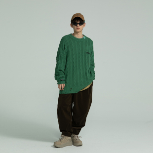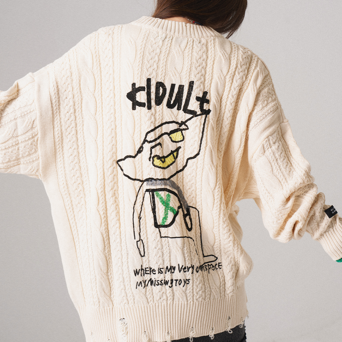 手工磨破 针织衫 复古绞花 圆领套头毛衣毛衫 抽象印花 APPARITION