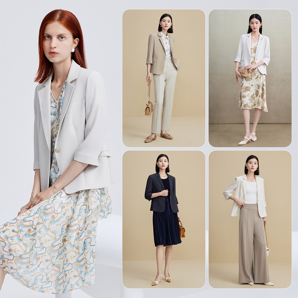 简约气质通勤别致七分袖 新款 百搭外套女 2025秋季 菲妮迪品牌西装