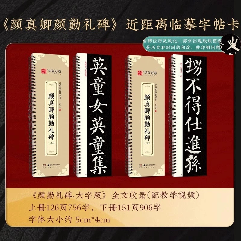 楷书毛笔字帖初学者临摹范本 颜真卿颜勤礼碑上下全文收录近距离临摹字卡视频书法示范活页字卡放大版 近距离字卡字帖 共两本