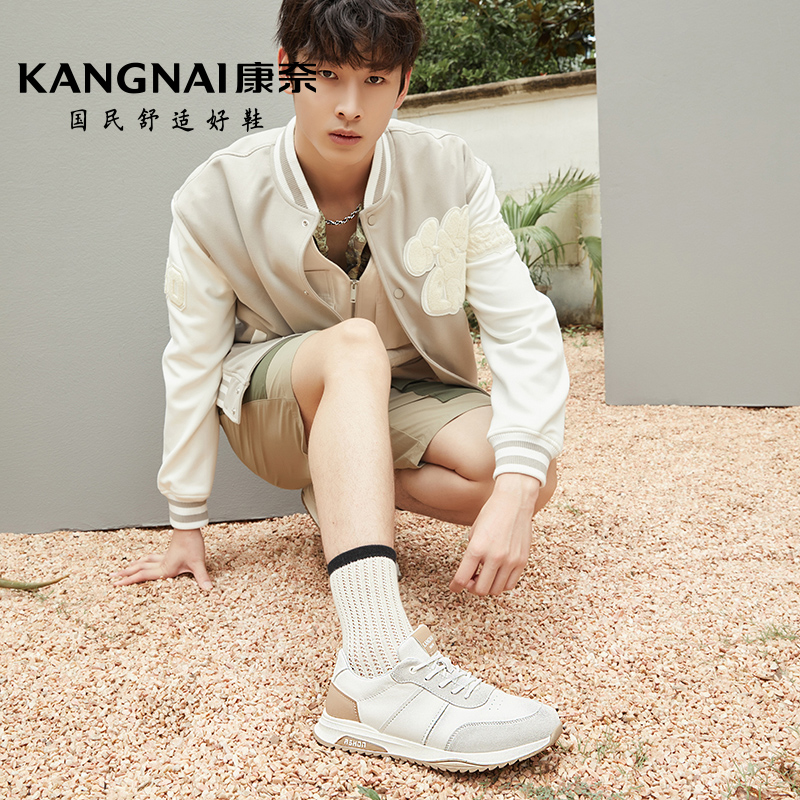 秋季 软底皮鞋 新款 子男士 防滑 系带防滑耐磨真皮运动休闲鞋 康奈男鞋