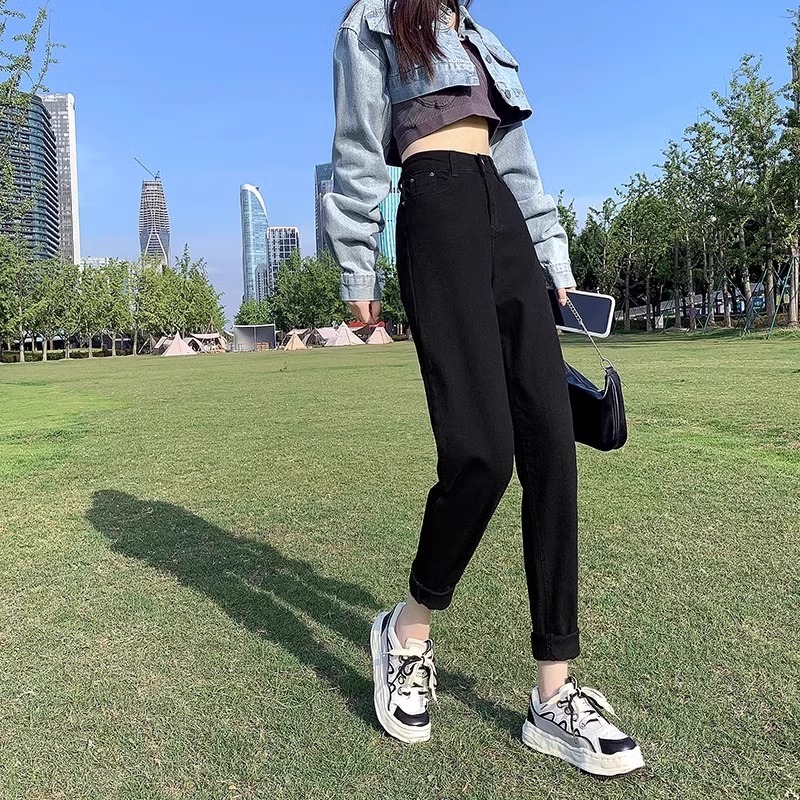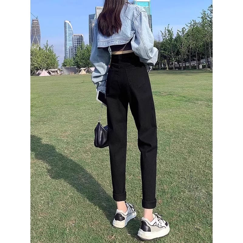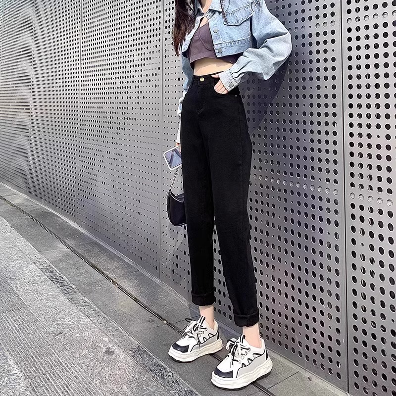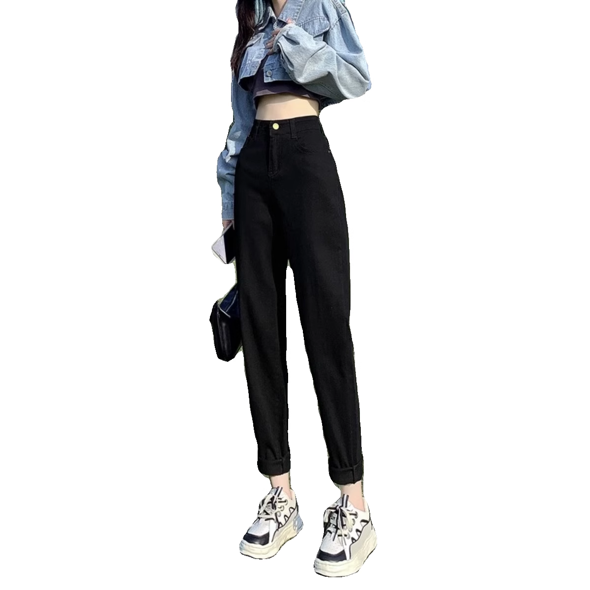 女春秋小个子慵懒宽松复古直筒微喇休闲裤 美式 高街高腰阔腿牛仔裤