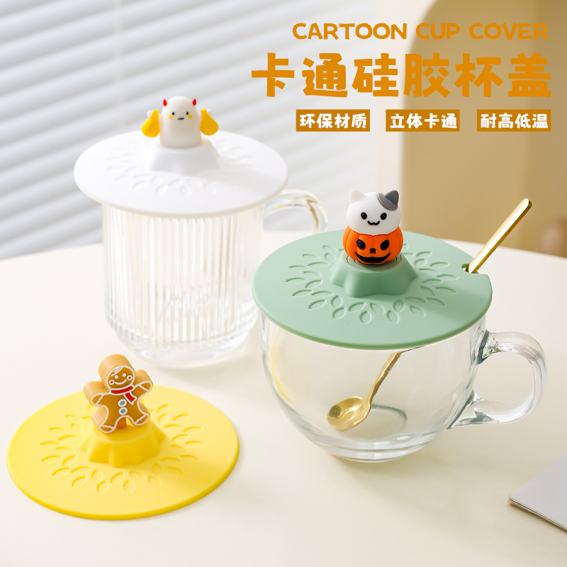 通用杯盖食品级硅胶杯盖11cm大号马克杯盖耐高温早餐杯防尘带勺孔