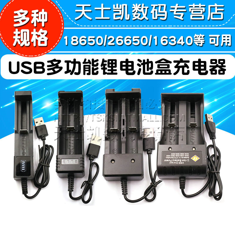 26650 18350 16340可用 18500 USB多功能锂电池电池盒充电器18650