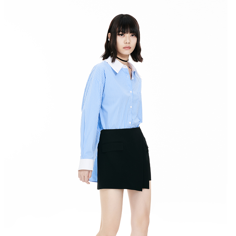 藏青色冰丝衬衣男士 班尼路SK系列衬衫 新款 男夏季 轻商务上衣A 短袖