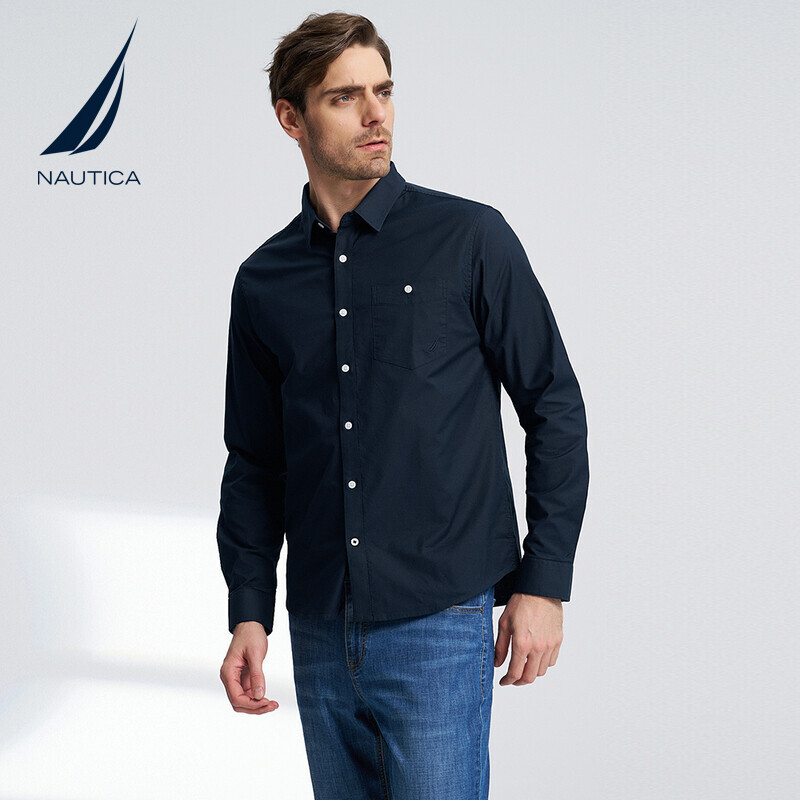 牛仔衬衣男18045803 男洗水单口袋宽松长袖 设计师款 佐丹奴牛仔衬衫