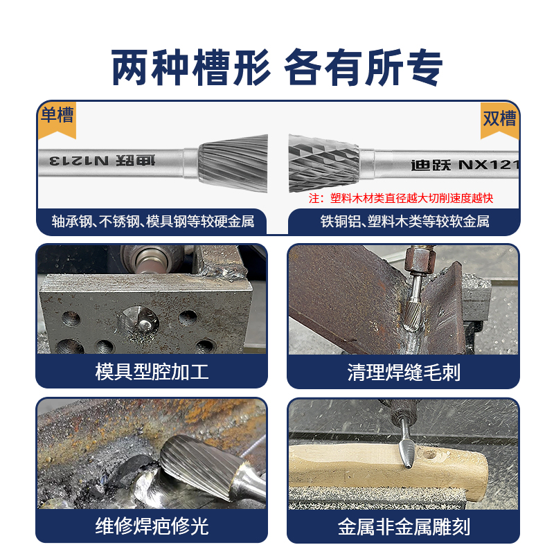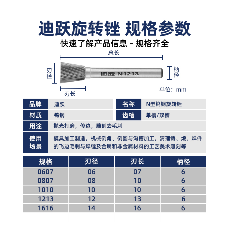 迪跃N型钨钢打磨头硬质合金旋转锉电磨头金属扩孔钻头内磨头铣刀