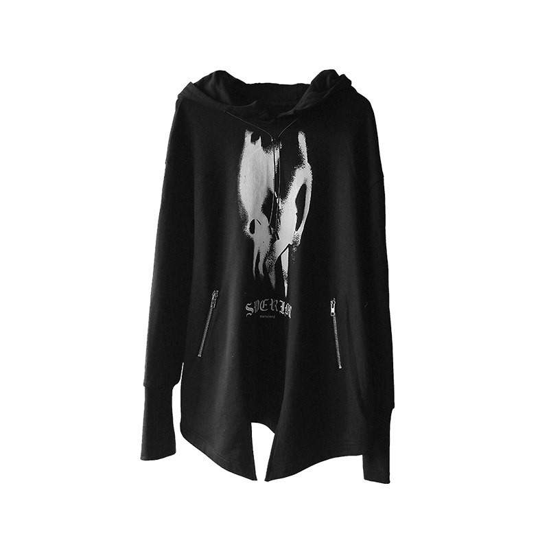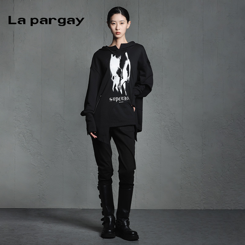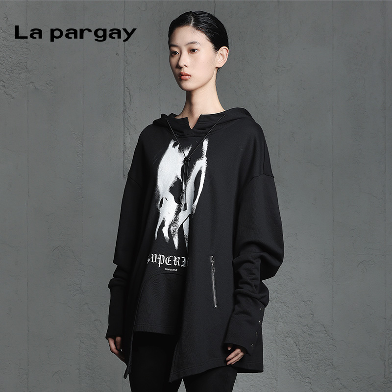 黑色个性 女式 宽松上衣 不规则连帽卫衣2025早春新款 纳帕佳套头长袖