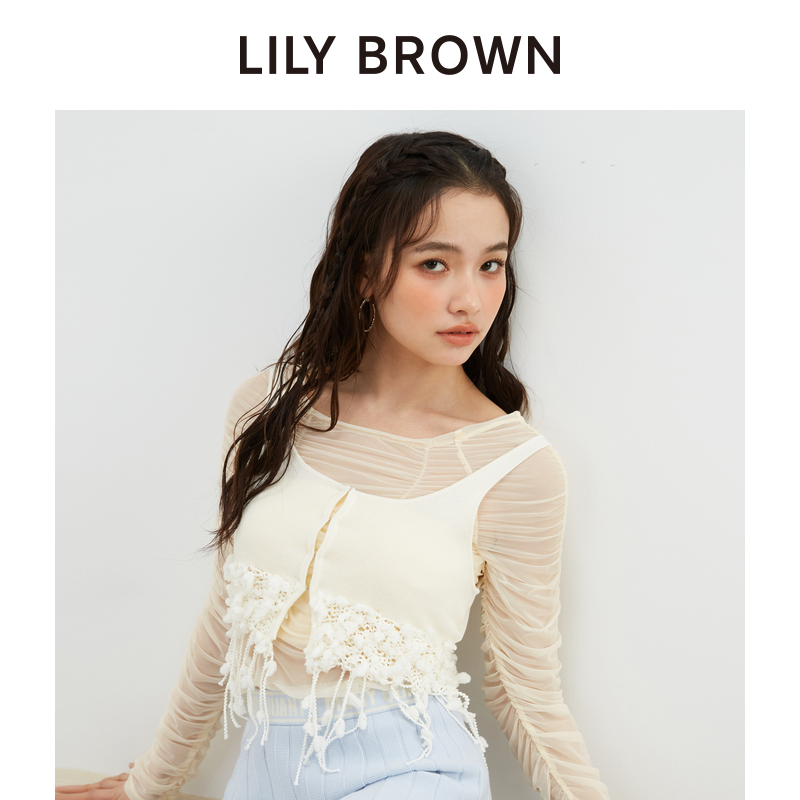 LILY 甜美流苏拼接百搭针织背心马甲LWNT241022 BROWN春夏款
