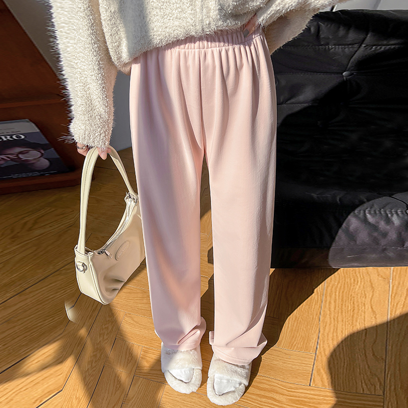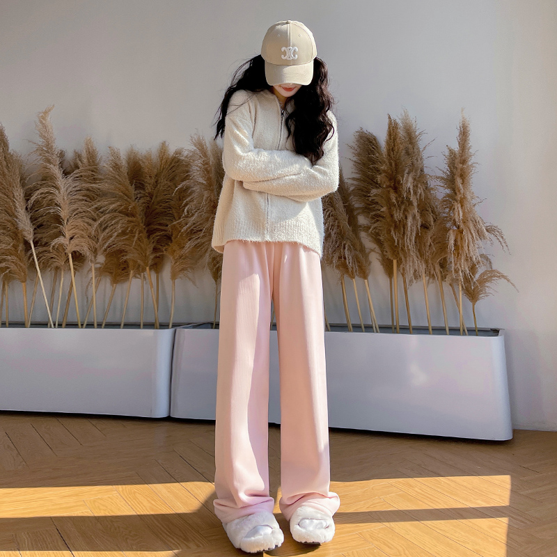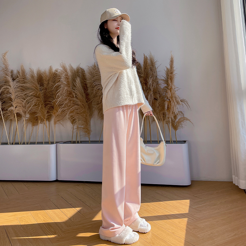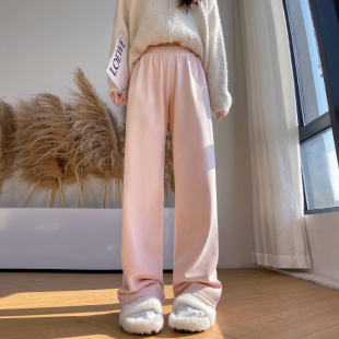 休闲直筒裤 粉色加绒阔腿裤 小个子高腰垂感面膜裤 秋冬款 女2023新款