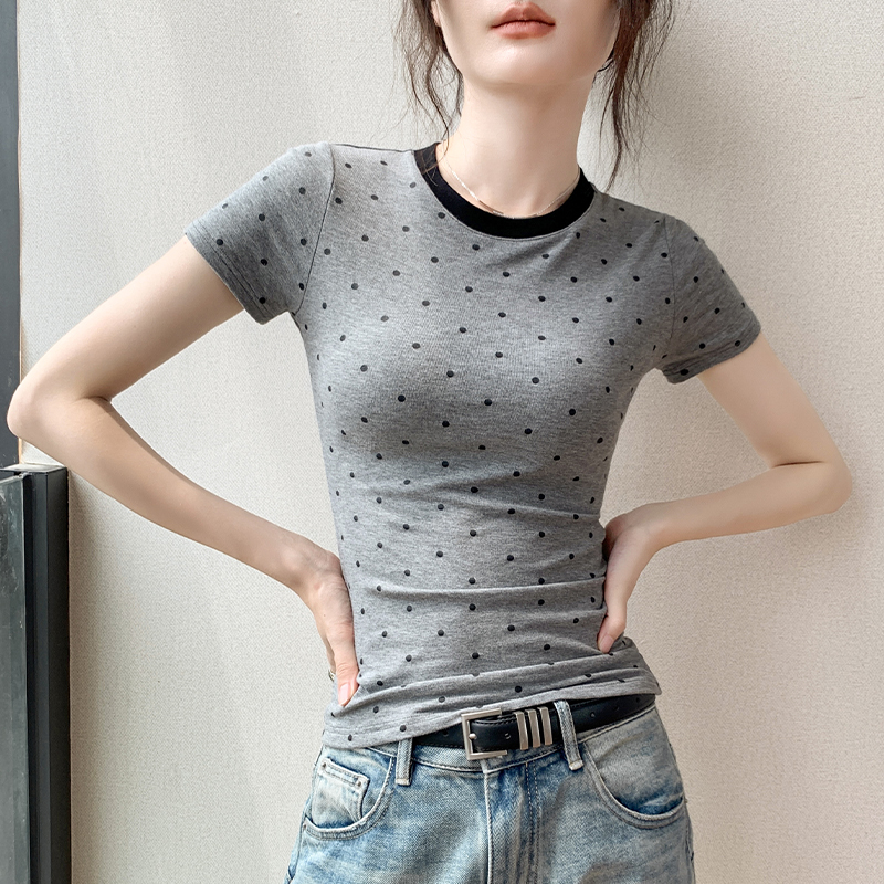 薄款 歌倍尚波点短袖 撞色圆领莫代尔正肩打底衫 修身 T恤女2025新款