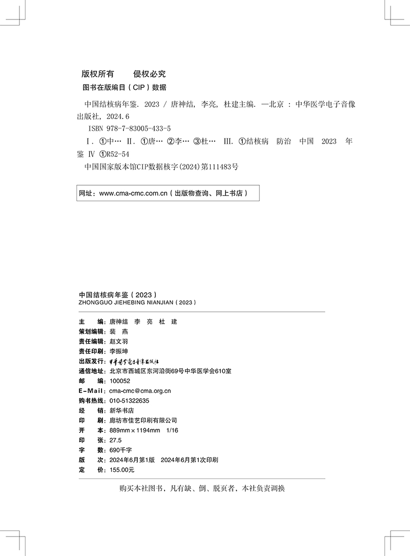 专业性工具书 中国结核病年鉴 实用性和史料性于一体 学术性 适用于结核病学领域医务人员及卫生管理人员阅读9787830054335 2023