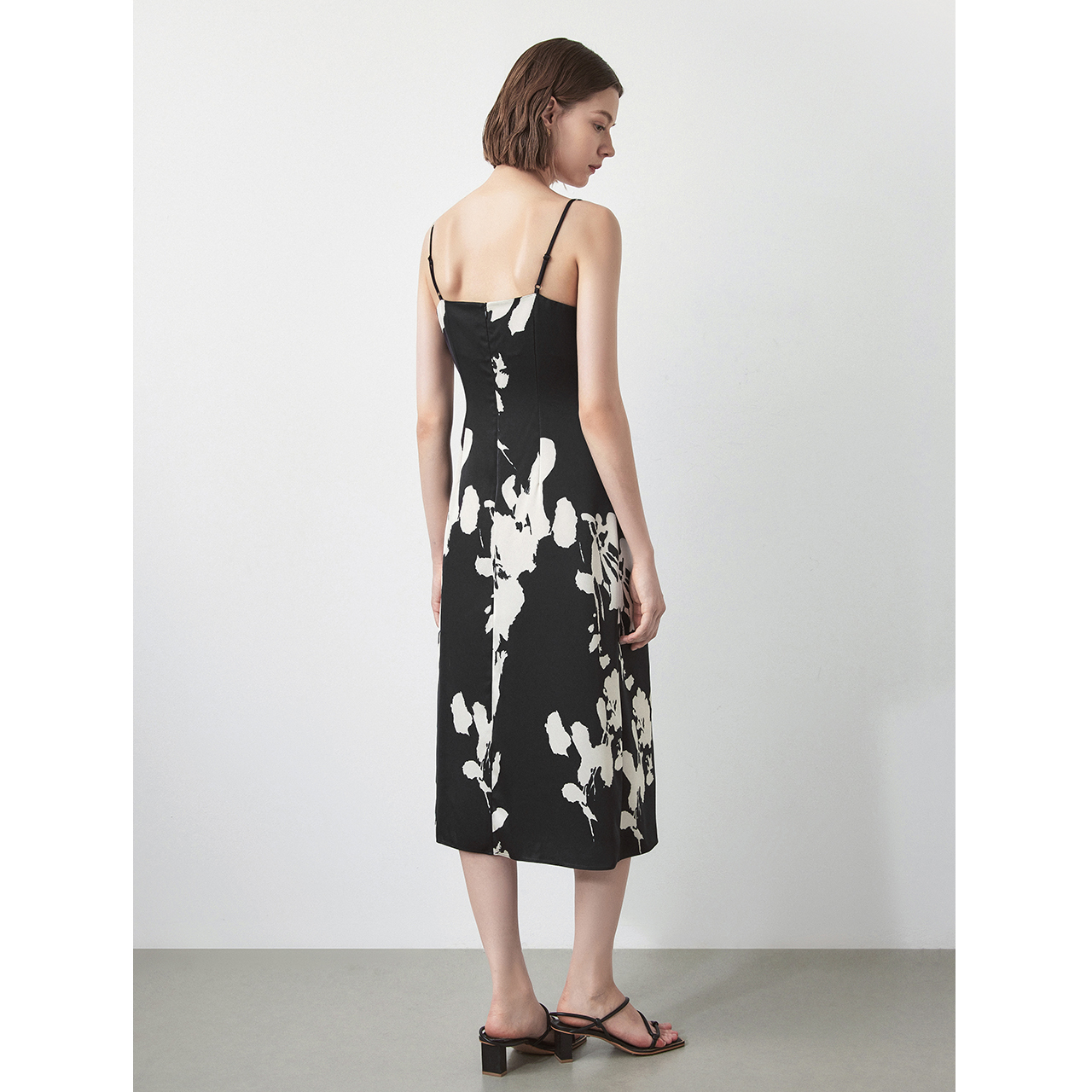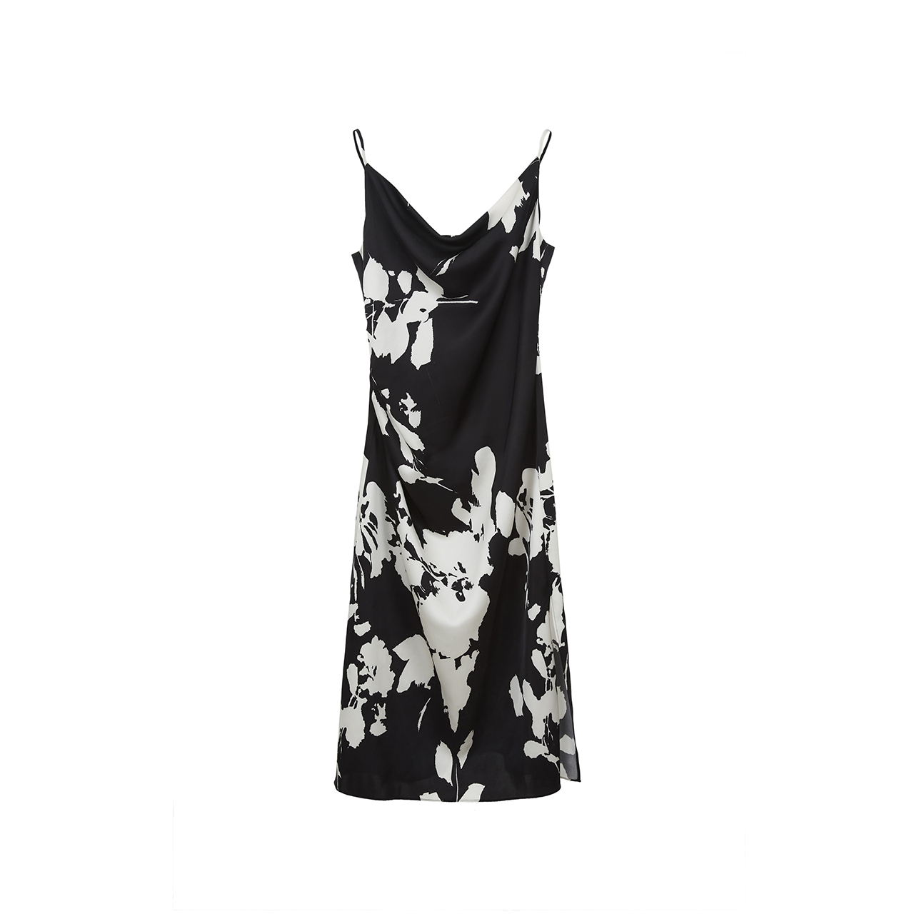 荡领褶皱连衣裙2024夏新款 朗姿法式 王楚然同款 印花 朗姿奥莱