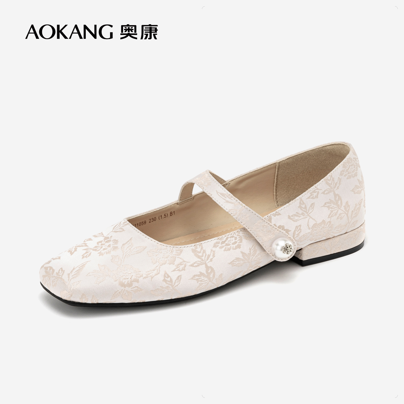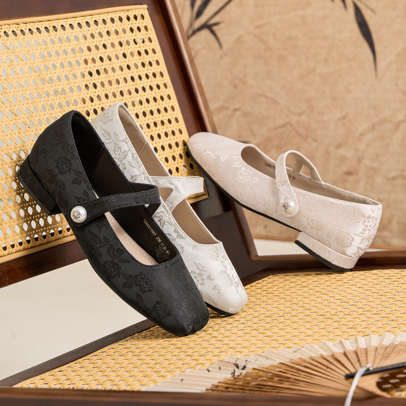 女 羊皮芭蕾玛丽珍单鞋 董洁董璇小酒窝同款 真美诗摩卡慕斯25秋新款