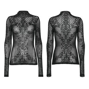 紧身显瘦上衣打底衫 秋冬新款 黑色蕾丝衫 植绒T恤高领长袖 哥特女装