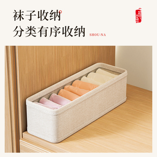 日本天山棉麻袜子收纳盒内衣内裤 分格整理盒抽屉放贴身衣物可折叠