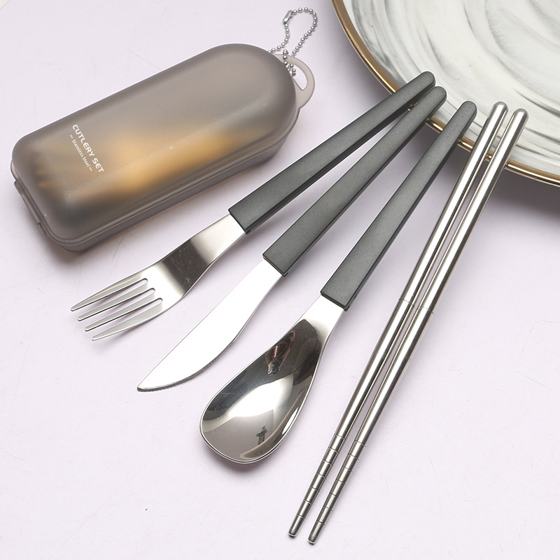 韩式 便携304不锈钢刀叉勺筷四件套上班族学生可拆卸折叠餐具套装