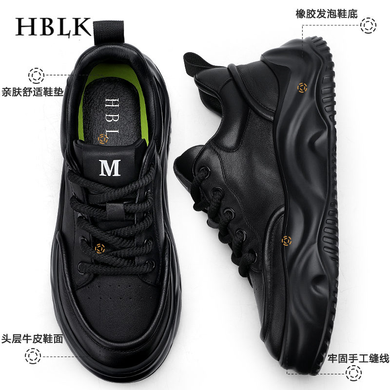 轻便内增高运动板鞋 男鞋 男士 真皮透气软厚底百搭休闲潮鞋 2025新款