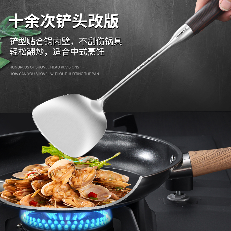 德国316不锈钢锅铲食品级加厚炒菜铲子家用漏汤勺炒勺硅胶铲套装