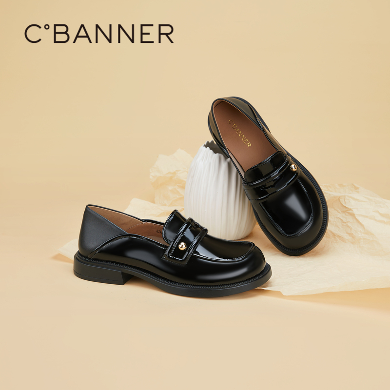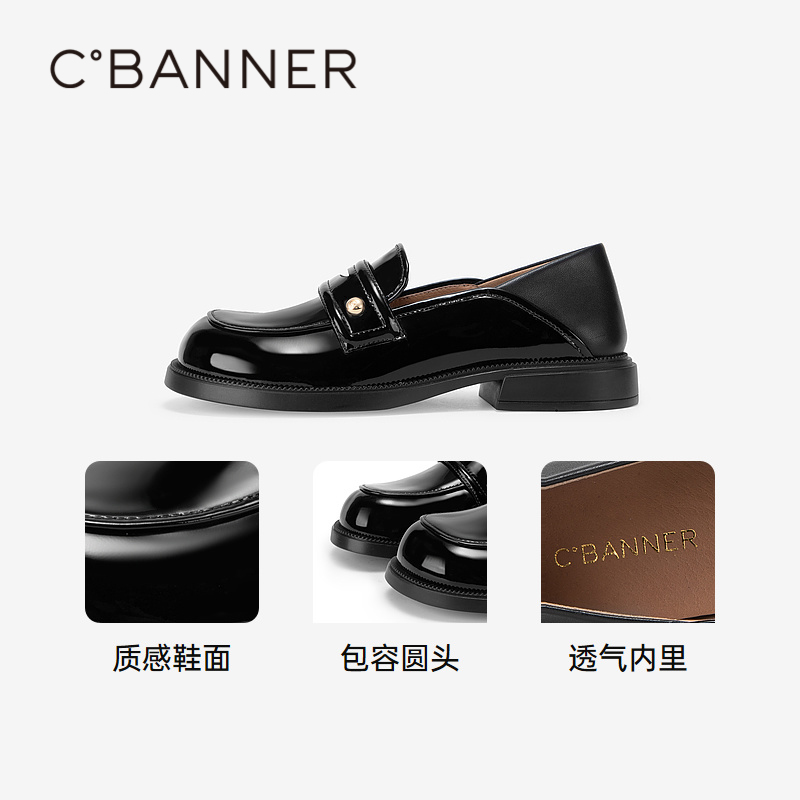 女秋季 增高低跟黑色小皮鞋 新款 JK鞋 通勤 时尚 千百度漆皮乐福鞋