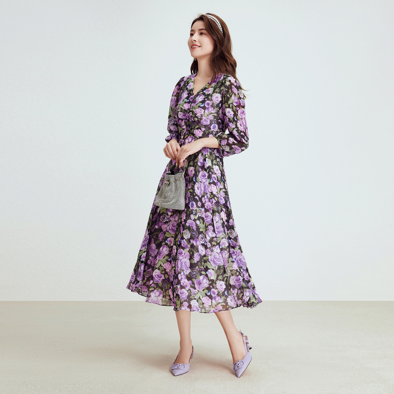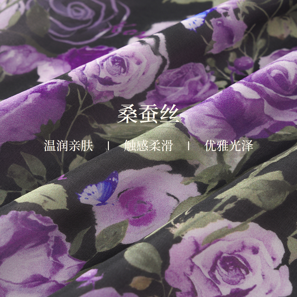 秋气质度假风浪漫玫瑰连衣裙女 珂莱蒂尔商场同款 100桑蚕丝