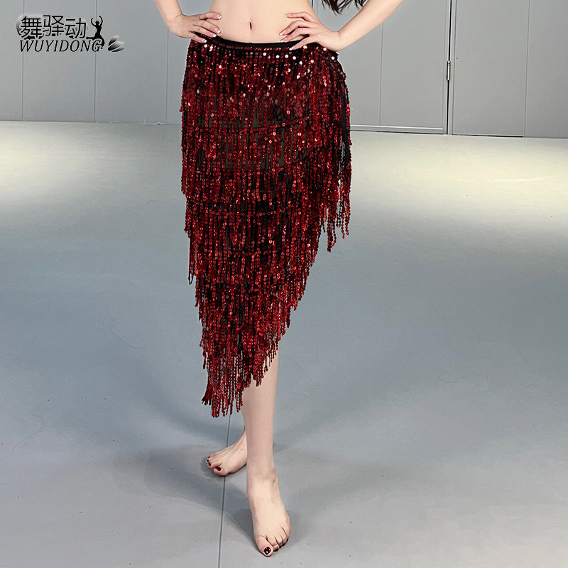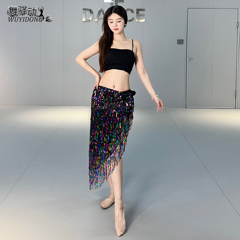 舞娘肚皮舞亮片炫彩东方舞臀巾珠绣流苏腰链舞蹈服团体百搭演出服
