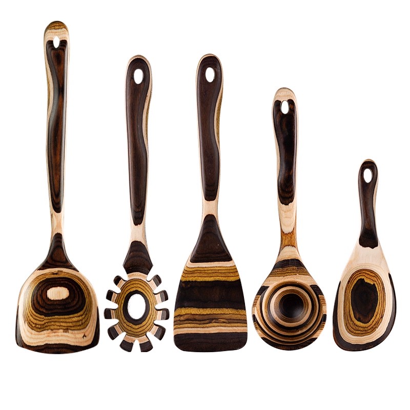 原森太彩木锅铲家用木质烙饼汤漏勺耐高温炒菜套装 不粘锅专用铲子