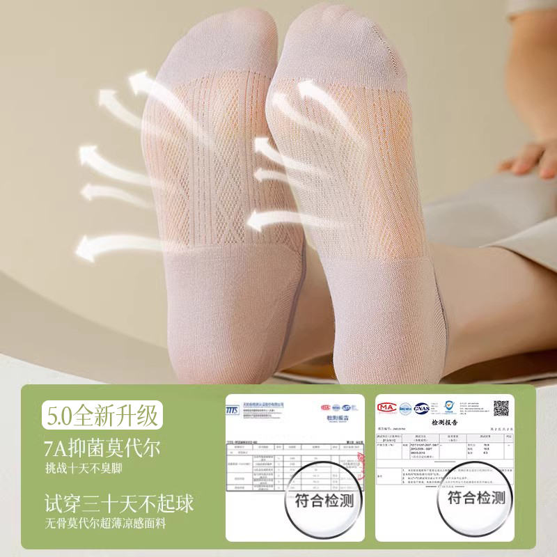 莫代尔袜子女船袜夏季 防滑不掉跟浅口隐形袜网眼透气夏天短袜 薄款