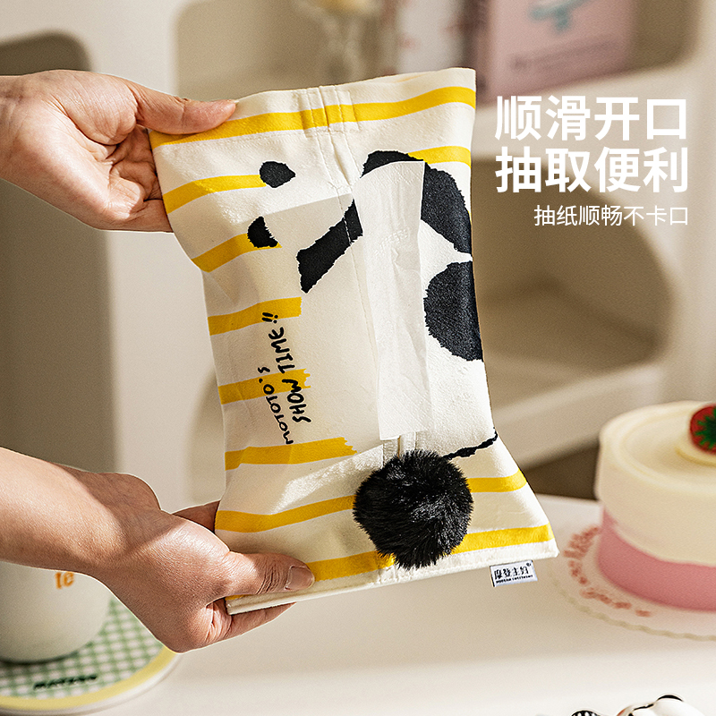 摩登主妇mototo熊猫布艺纸巾盒办公室家用客厅抽纸盒车载收纳纸袋