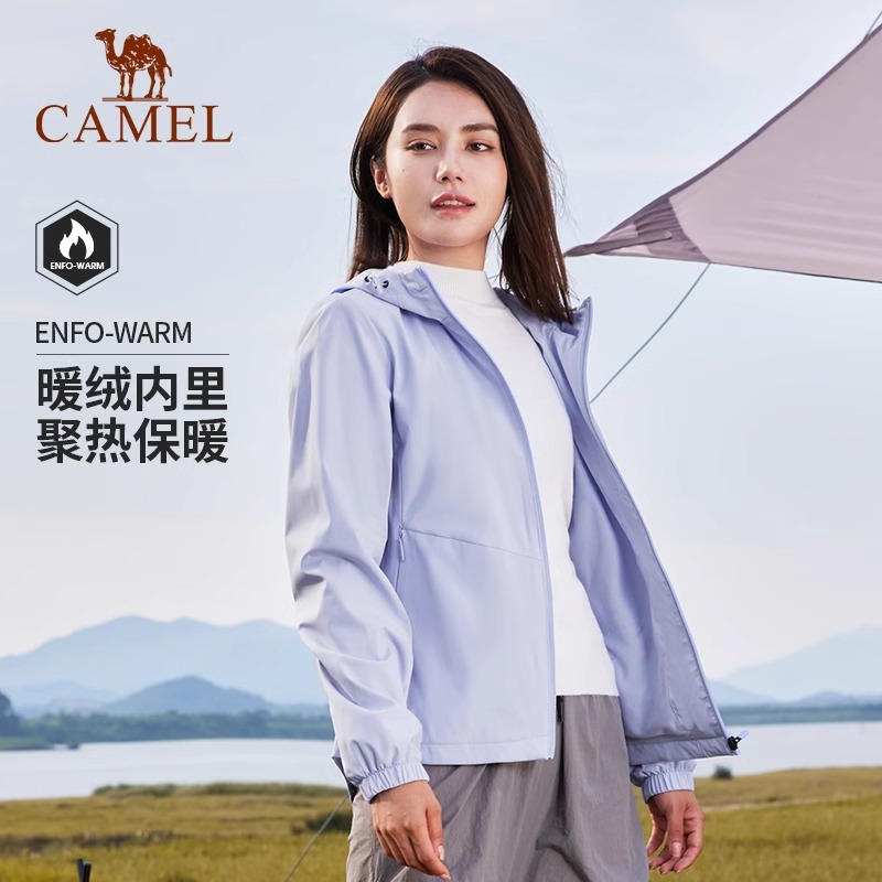 Camel骆驼运动外套秋冬休闲加绒连帽户外防风防雨单冲登山服男装
