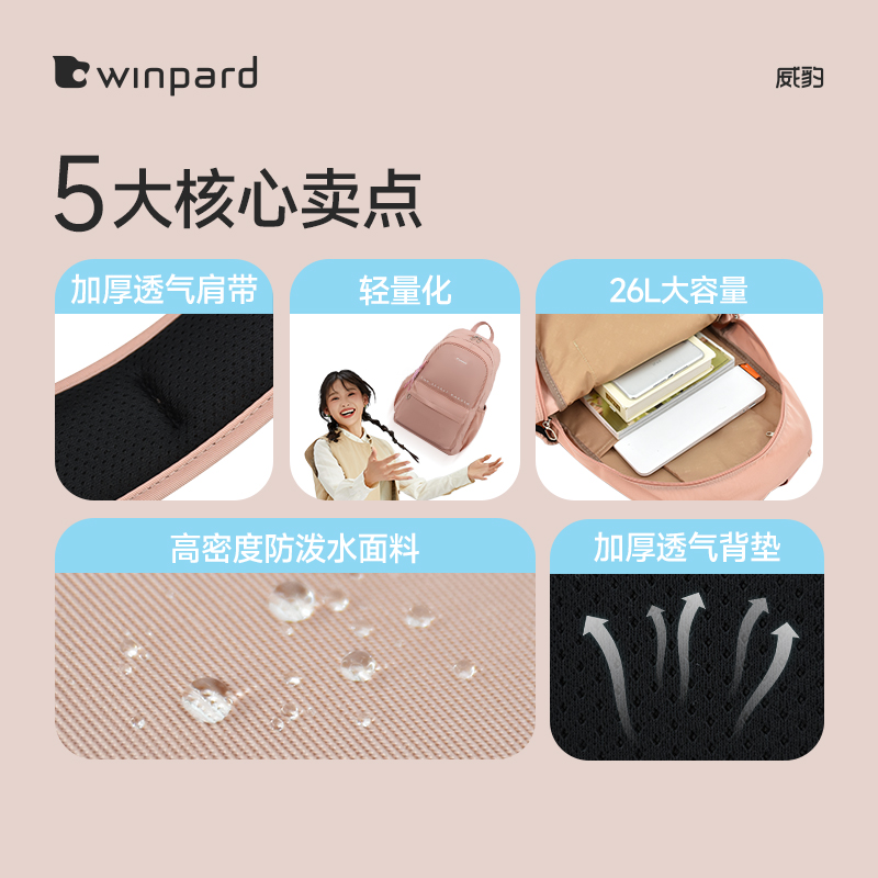 威豹双肩背包女士通勤大容量学生书包轻便旅游电脑背包轻便防泼水