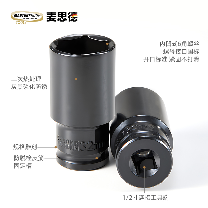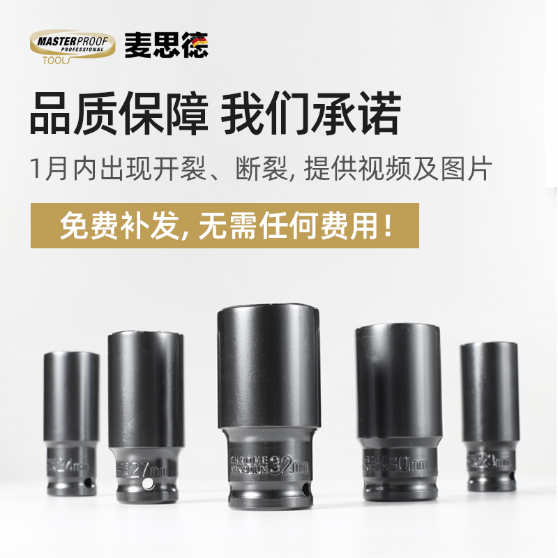 麦思德电动扳手套筒全套加长汽修大中小飞内六角风炮筒头组合套装