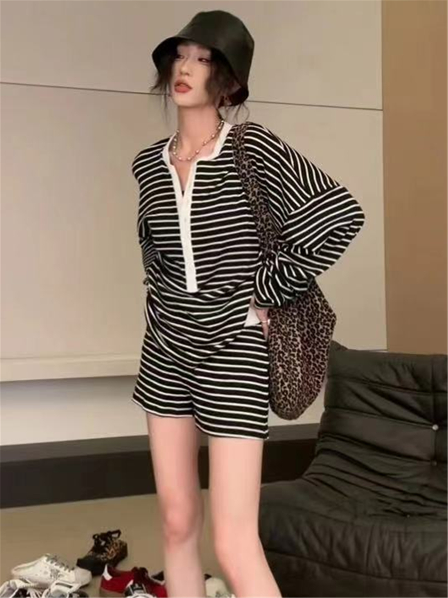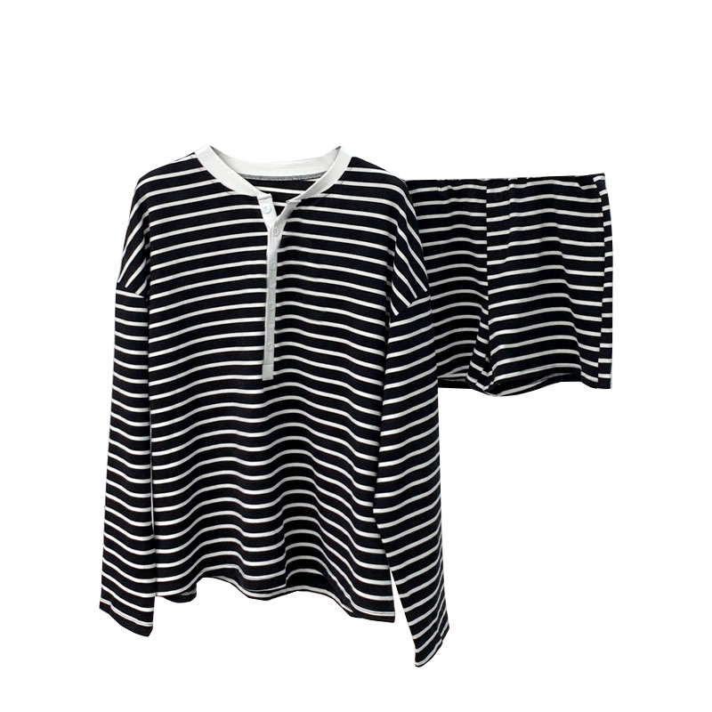 tbh野兽派家天丝棉条纹家居服套装 可外穿情侣睡衣男 女四季