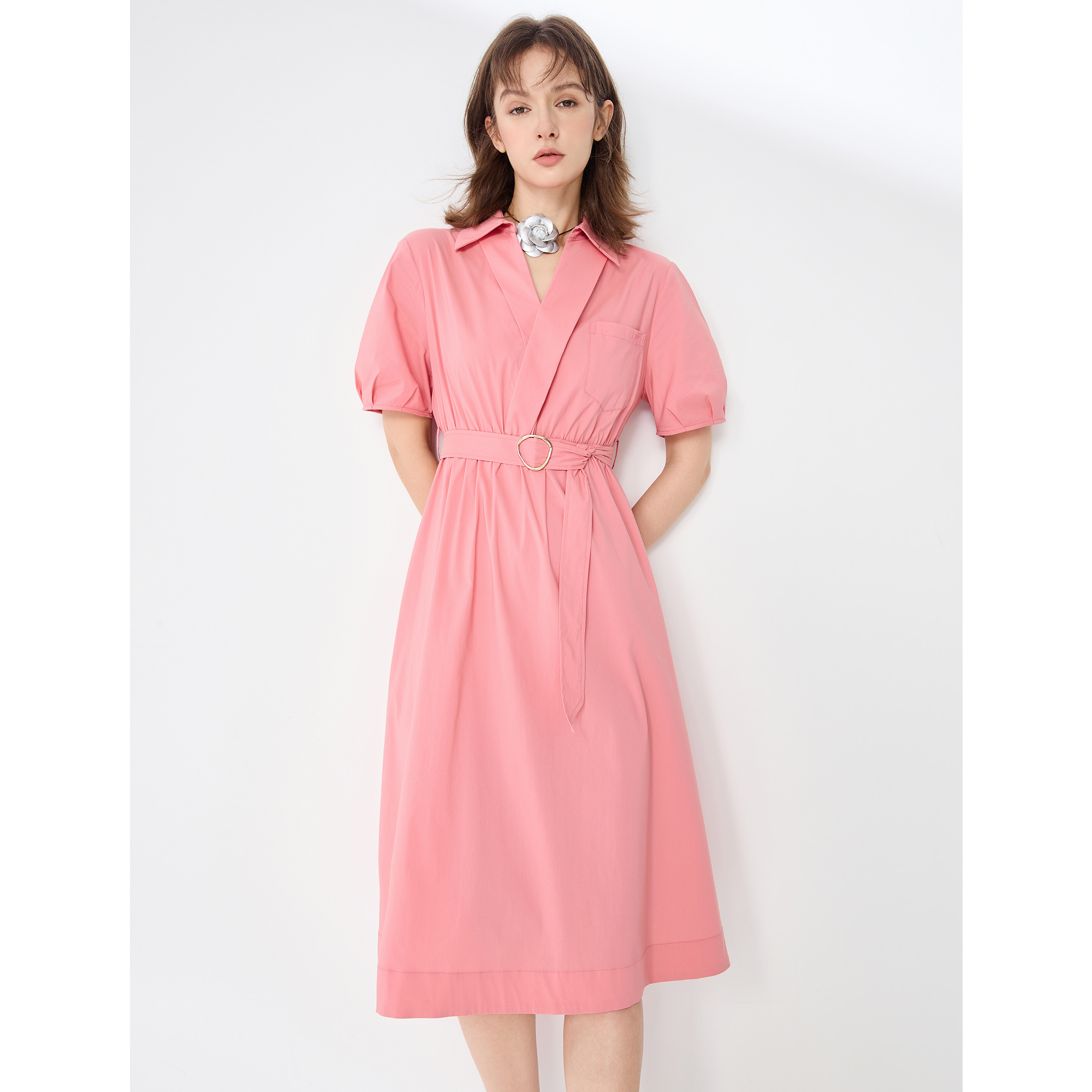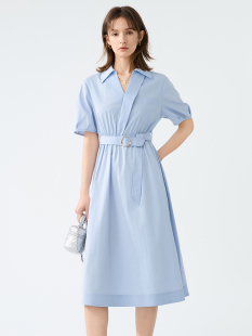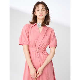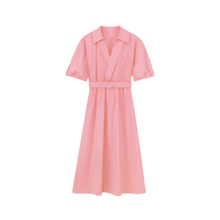 裙2025夏新款 百家好气质v领衬衫 收腰显瘦减龄连衣裙 House Basic