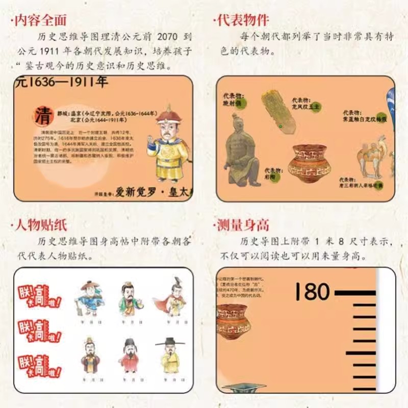 尺墙顺序生长卡通墙上中国整张测量青少年历史年代身高贴漫画墙贴 书籍 正版