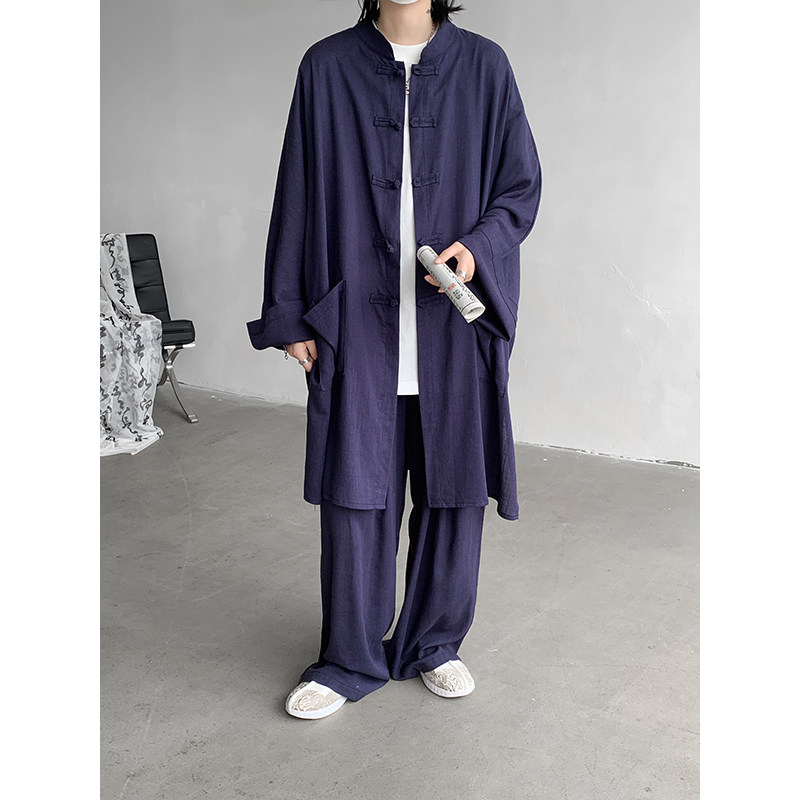 国风男装 棉麻唐装 套装 居士服禅意亚麻道袍外套防晒长衫 夏季 新中式