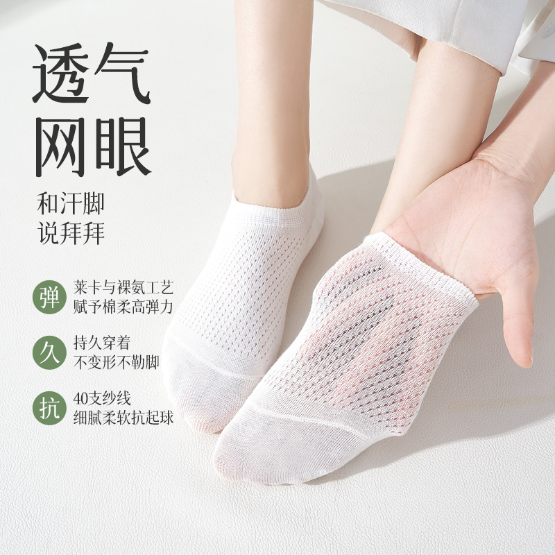 船袜女夏季 网眼透气隐形纯棉不掉跟硅胶防滑夏天女士浅口短袜 薄款
