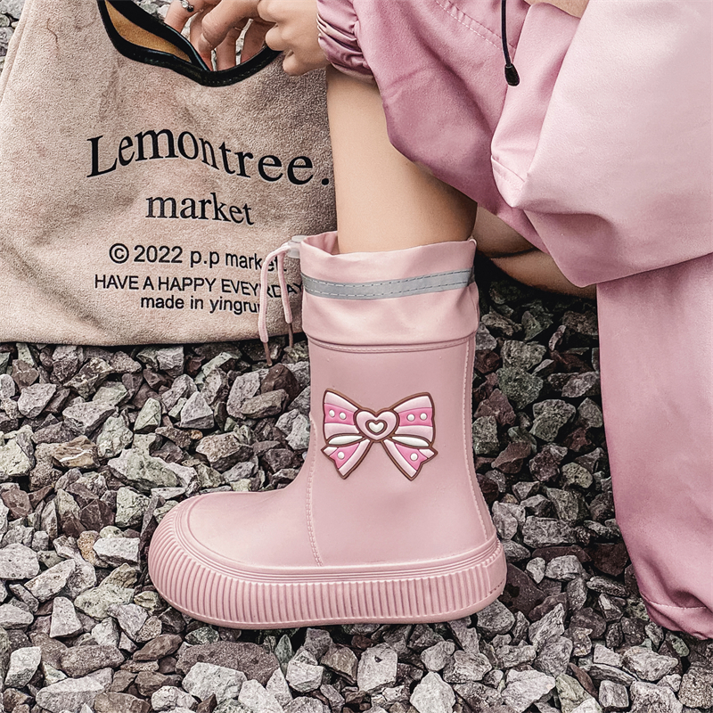 水靴防滑胶鞋 慕儿雨鞋 加绒雨靴可爱蝴蝶结防水口水鞋 2025新款 女款