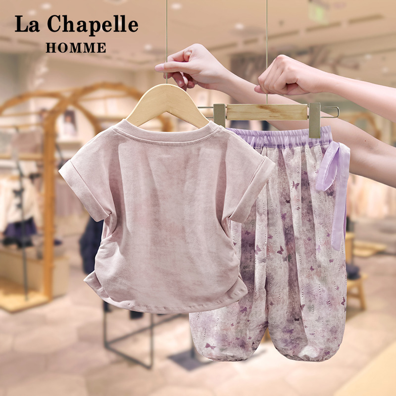 儿童女宝甜美蝴蝶结T恤束脚裤 拉夏贝尔女童夏季 2025新款 套装 短袖