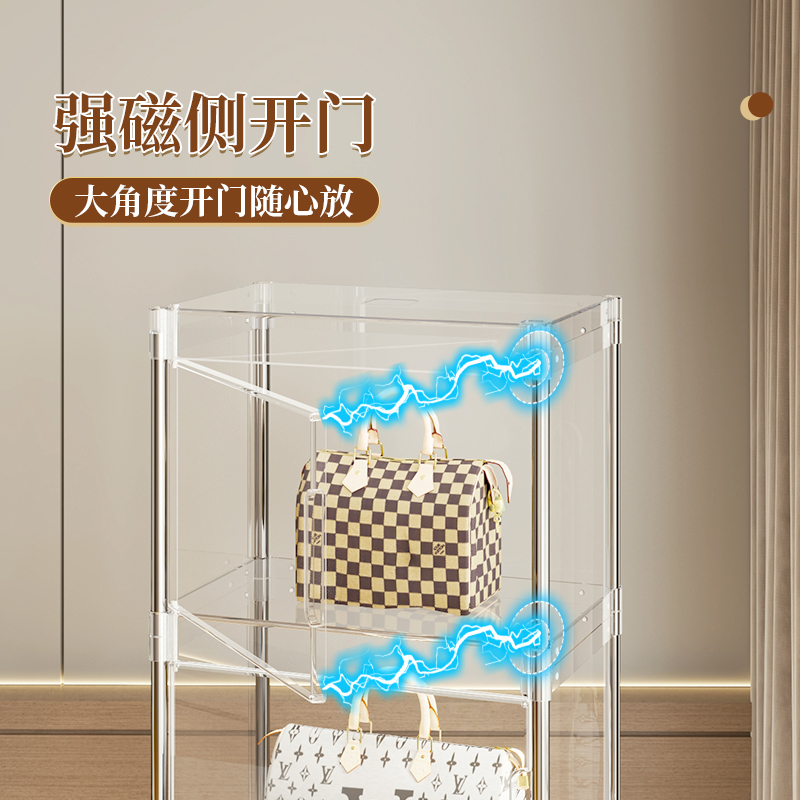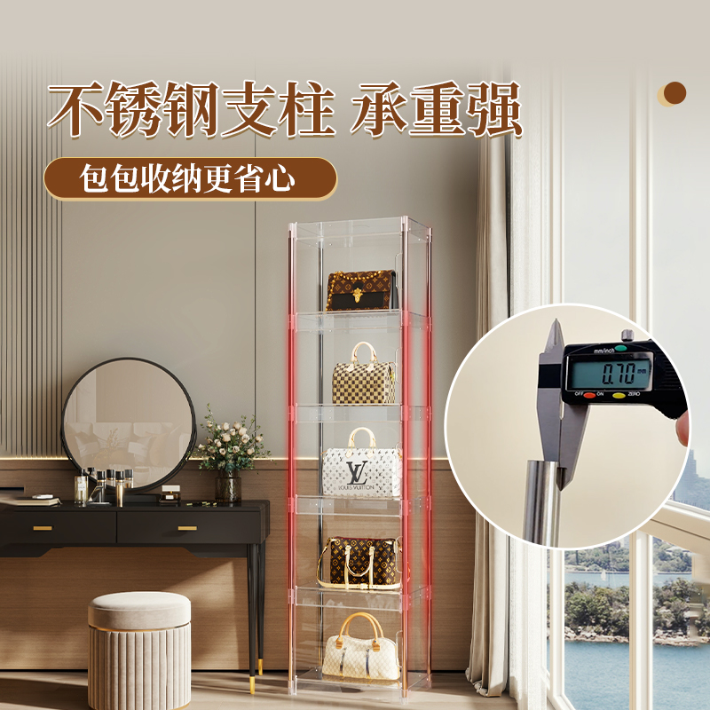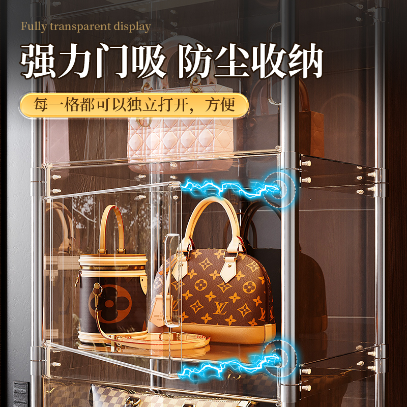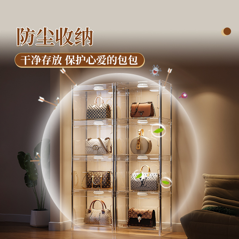 包包收纳神器透明展示柜家用防尘落地带灯小收纳架奢侈品存放盒子